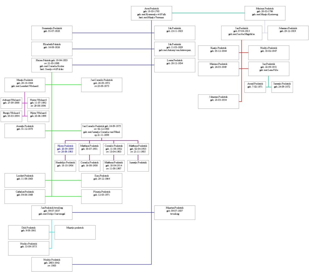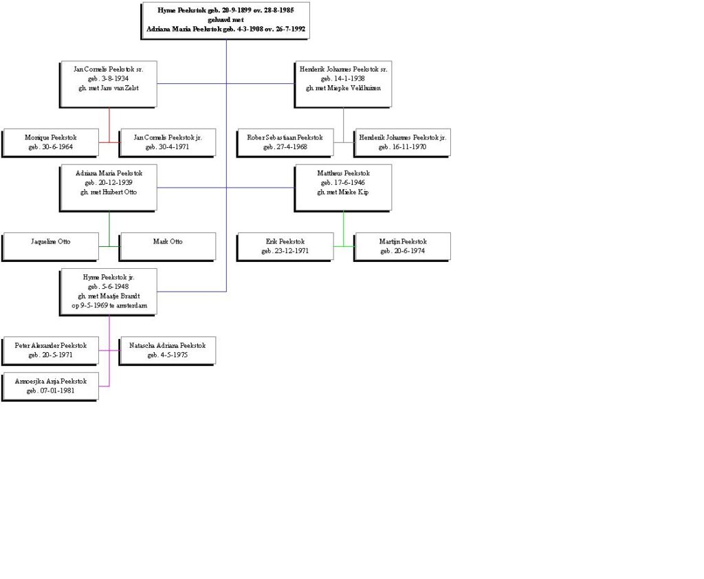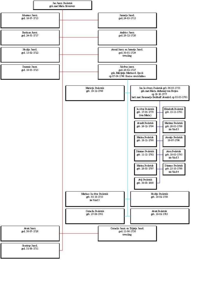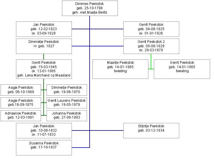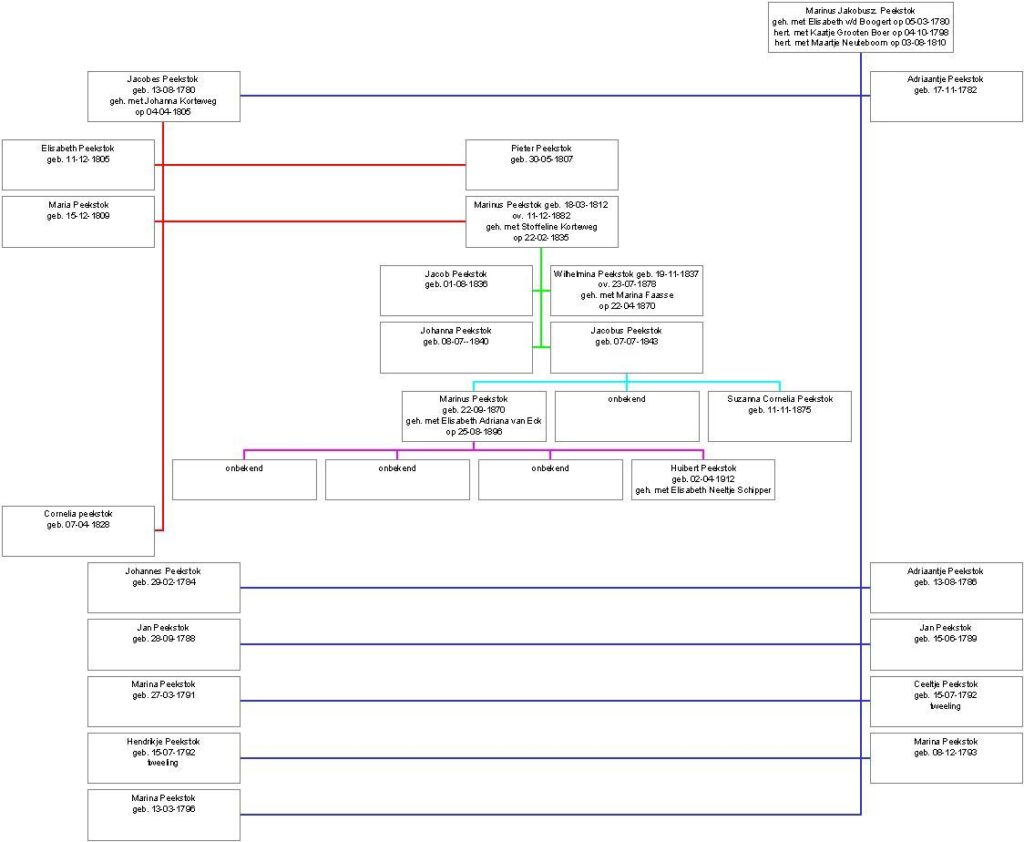 Hier ziet u een deel van onze stamboom beginnende bij Jan Janszoon Peekstok.